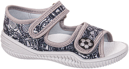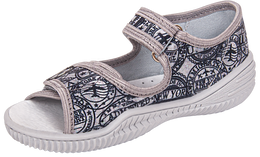 Children's sneakers from the Viggami company. They are grey with reflective details. This model is modeled on sandals and has an insole made of natural leather. They are fastened with velcro and their sole prevents slipping. These shoes are made of high-quality textile materials, they are light, comfortable and practical. They are perfect for school, kindergarten or playing in the garden. Children's sneakers are available in sizes 19-25 in our warehouse.