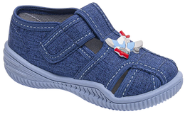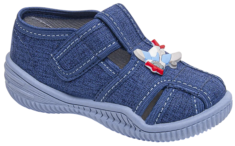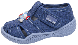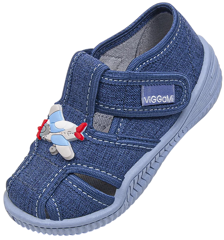 Children's sneakers from the Viggami company. They have a beautiful navy blue with an interesting print. They are made of high-quality textile materials with provide good ventilation. They are fastened with velcro and their sole prevents slipping. They are perfect for kindergarten or playing in the garden. Children's sneakers are available in sizes 20-25 in our warehouse.