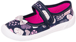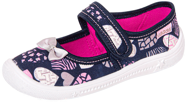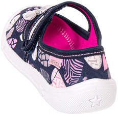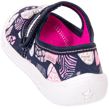 Children's sneakers from the Viggami company. They are navy blue with beautiful print. They are fastened with velcro and their sole prevents slipping. These shoes are made of high-quality textile materials which provide good ventilation. They are perfect for school, kindergarten or playing in the garden. Children's sneakers are available in sizes 26-33 in our warehouse.