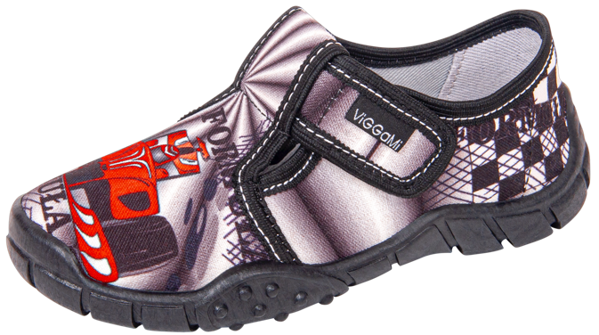 Children's sneakers from the Viggami company. They have a grey color with red elements and an interesting print. These shoes are made of high-quality textile materials and they have a velcro. Their flat, rubber sole prevents slipping. They are perfect for school, kindergarten or for playing in the garden. Children's sneakers are available in sizes 23-36 in our warehouse.