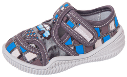 Children's sneakers from the Viggami company. They are grey with interesting plaid pattern. They are fastened with velcro and their sole prevents slipping. These shoes are made of high-quality textile materials with provide good ventilation. They are perfect for school, kindergarten or playing in the garden. Children's sneakers are available in sizes 20-25 in our warehouse.