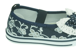 Children's trainers from the Atletico company. They are available in two colors - navy blue and pink with a beautiful lace adornment. They are made in a very nice style from high-quality textile materials. Leather insole provides high comfort during use. Their rubber soles prevent slippage and the textile material guarantees adequate ventilation. These shoes are light, comfortable and practical they will be suitable for school or everyday use. Children's trainers are available in sizes 20-24 in our warehouse.