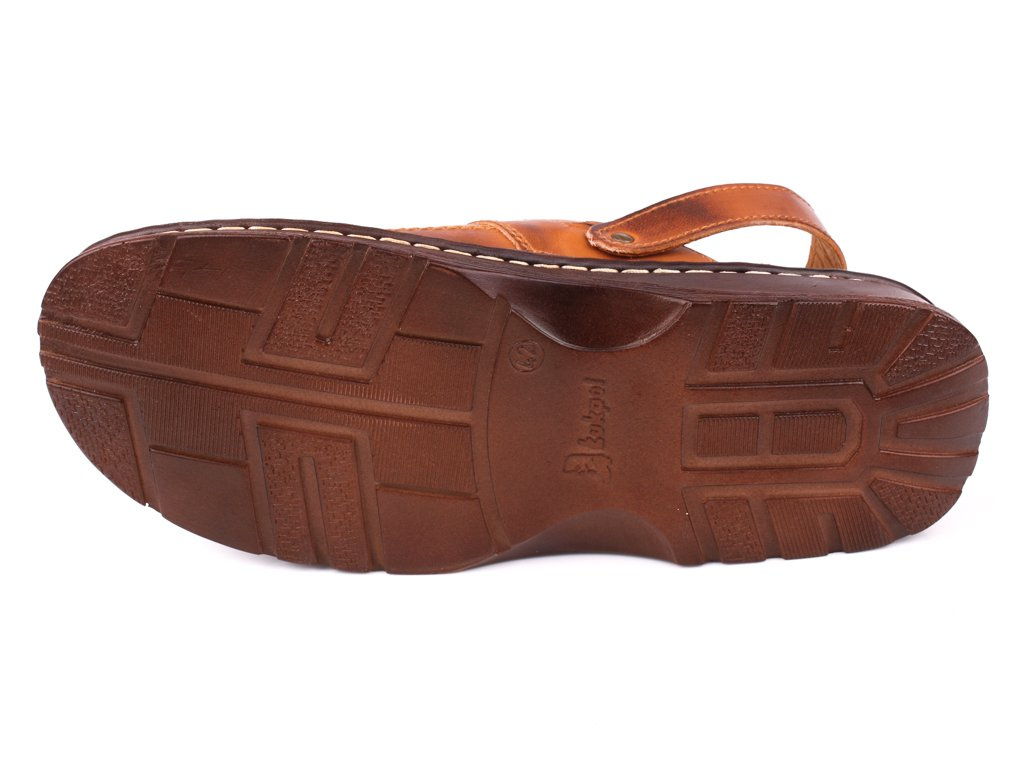 Men's slippers from the Łukpol company. They come in beautiful cognac color. They are made of high-quality natural leather in a very nice and elegant design. The holes are decorative but also provide great ventilation. They have a buckle fastener that allows them to perfectly fit the foot. The soft insole made of natural leather ensures high comfort during use. These slipers will be perfect not only on a daily basis, but also for the special occasions. Men's slippers are available in sizes 41-46 in our warehouse.