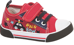 Children's trainers from the American company. They are available in two colors - red or navy blue with colored inserts. They are made of high-quality textile materials. The rubber sole prevents slipping and the textile material guarantees adequate ventilation. This model has an insole made of natural leather, which ensures high comfort. In addiction, the Velcro fastening allows you to perfectly fit the shoes to the foot. These shoes are light, comfortable and practical they will be suitable for every day use. Children's trainers are available in sizes 26-30 in our warehouse.