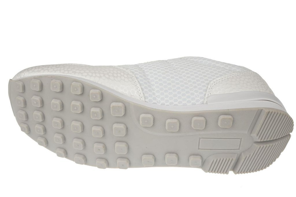 Men's sports shoes from the MSTR company. They are white with holographic effect. The shoes are solidly made of textil materials and eco leather in an interesting design. Their sole is thick, made of foam, making the shoes very light. The classic pattern of a sports shoe has been diversified with interesting stitching that adds character to them. This model is very comfortable and practical, it will be perfect for work or everyday use. Men's sport shoes are available in sizes 41-46 in our warehouse.