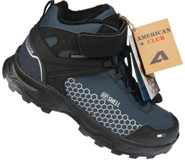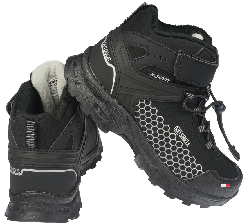 Children's winter shoes from American Club company. They are available in two colors - black or navy blue. They are made of high-quality materials in a very nice design. They have a SOFTSHELL upper that protects the foot against rain, wind and low temperature. Thanks to the thick sole with a tread, they do not slip and are adhesive to the ground. The inside of the shoe is insulated, which makes them suitable for winter days. Velcro fastening allows for a perfect fit of the shoes to the foot. They are perfect for everyday use in winter or for mountain trips. Children's winter shoes are available in sizes 32-36 in our warehouse.
