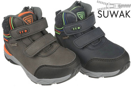 Children's winter shoes from the Badoxx company. They are available in two colors - gray or navy blue. They are made reliably and carefully from high-quality ecological leather in an interesting design. They are mounted on a rubber sole that prevents slipping. The interior is made of a very warm sheepskin coat, and the zip fastening allows for a quick and easy way to put on the shoe. This model is perfect for everyday use during winter days, it will perfectly complement many styling. Children's winter shoes are available in sizes 26-31 in our warehouse.