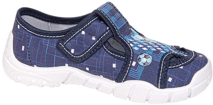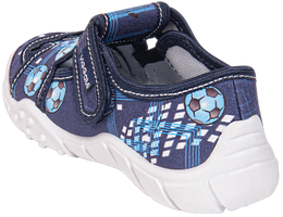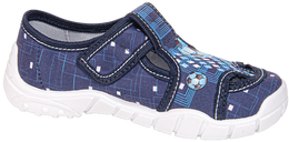 Children's sneakers from the Viggami company. They are navy blue with a minimalist pattern. These shoes are made of high-quality textile materials. Sneakers are fastened with velcro and flat, rubber sole prevents slipping. They are perfect for school, kindergarten or playing in the garden. Children's sneakers are available in sizes 26-30 in our warehouse.