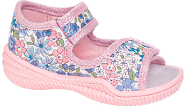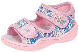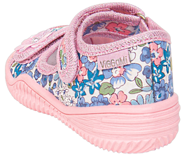 Children's sneakers from the Viggami company. They are pink with a beautiful floral print. This model is modeled on sandals and has an insole made of natural leather. They are fastened with Velcro, and their pink sole prevents slipping. These shoes are made of high-quality textile materials. They are perfect for school, kindergarten or playing in the garden. Children's sneakers are available in our stock in sizes 20-25..