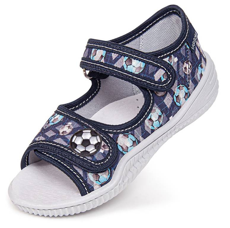 Children's sneakers from the Viggami company. They are navy blue with an interesting print and reflective elements. They are fastened with velcro and their sole prevents slipping. This model is modeled on sandals and has an insole made of natural leather. They are perfect for school, kindergarten or playing in the garden. Children's sneakers are available in sizes 26-30 in our warehouse.