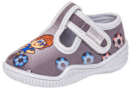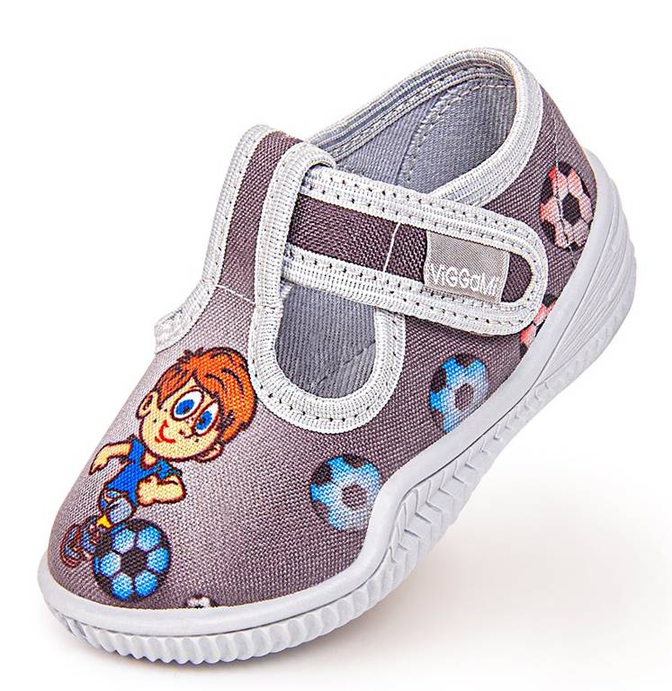 Children's sneakers from the Viggami company. They are grey with interesting print. They are fastened with velcro and their sole prevents slipping. These shoes are made of high-quality textile materials with provide good ventilation. They are perfect for kindergarten or playing in the garden. Children's sneakers are available in sizes 19-25 in our warehouse.