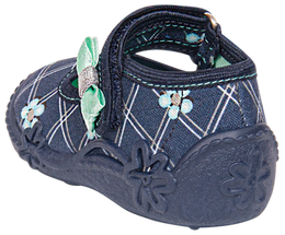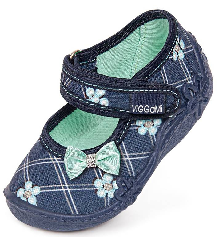 Children's sneakers from the Viggami company. They are navy blue with green elements, they have a beautiful pattern. They are fastened with velcro and their sole prevents slipping. These shoes are made of high-quality textile materials with provide good ventilation. They are perfect for school, kindergarten or playing in the garden. Children's sneakers are available in sizes 20-25 in our warehouse.