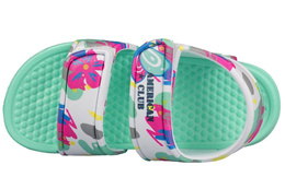 Children's pool slippers from the American Club company. They come in two colors - pink or fuxia. They are made of high-quality foam that is soft and flexible. An interesting pattern adds character to them. Their soles prevent slippage and the velcro allows adjustment. These slippers will be perfect for the pool, beach or garden. Children's pool slippers are available in sizes 30-35 in our warehouse.
