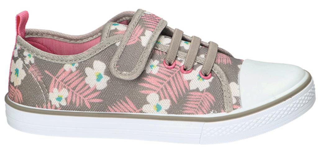 Children's shoes. They are made of high-quality textile materials with a charming floral motif, which makes them very girly. Rubber insert to prevent reaction, textile material for ventilation. The model has a lining made of natural leather, ensuring high wearing comfort. Additionally, the clasp allows you to go to the foot shoes. These shoes are light, comfortable and practical, perfect for everyday use. Children's sneakers are available in our warehouse in sizes 31-35.
