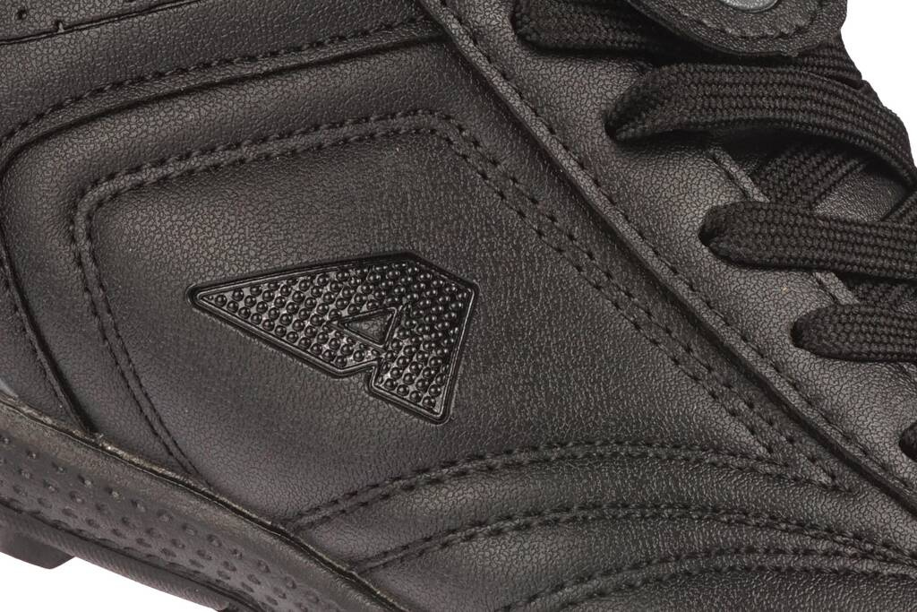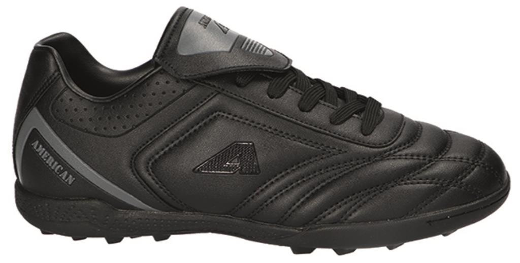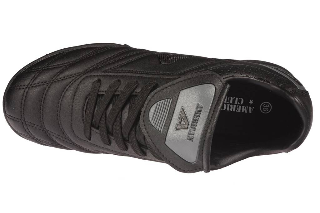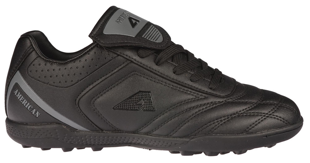 Halówki dziecięce firmy American Club w klasycznym czarnym kolorze z dodatkiem szarości. Stworzone zostały solidnie i starannie z najwyższej jakości skóry ekologicznej w bardzo ciekawym stylu. Posiadają gumową podeszwę, która gwarantuje dużą przyczepność jak i zapobiega poślizgowi. Doskonale sprawdza się podczas gry na sztucznych nawierzchniach trawiastych. Wywijany język to bardzo modne rozwiązanie i powrót do mody z przed lat. Buty posiadają miękką wyściółkę oraz wygodną wkładkę tekstylną. Buty piłkarskie American Club dostępne są w naszej hurtowni w rozmiarach 32-36.