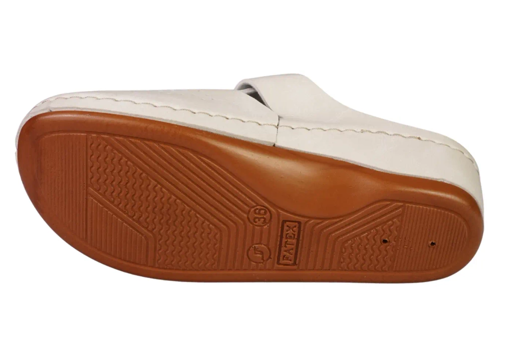 Women's Turkish slippers from the Fatex company. They are white in color with. They are made of high-quality eco leather in a very nice and interesting design. The delicate buskin makes the slippers look very feminine. Soft and pleasant insole provides maximum comfort. This model looks beautiful on the foot. These shoes are very light and comfortable, they will be perfect for everyday use or for special events. They are available in sizes 36-41 in our warehouse.
