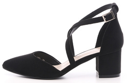 The block heel provides stability and comfort for prolonged wear, offering an elegant alternative to classic stilettos. Thanks to their solid construction and proper balance, these sandals guarantee walking comfort without compromising on a fashionable appearance. The closed toe is an added advantage – it subtly slims the foot, protects the toes, and adds a classic touch to the overall design. Black block-heeled sandals are a perfect addition to formal and semi-formal outfits.