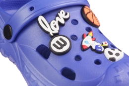 Children’s pool slides in Crocs style, available in pink, dark pink, blue, and navy, are a practical and stylish summer footwear option, designed for everyday use during warm weather. The collection features distinct designs for boys and girls – models with football decorations are intended for boys, while those with bunny-shaped pins are designed for girls.