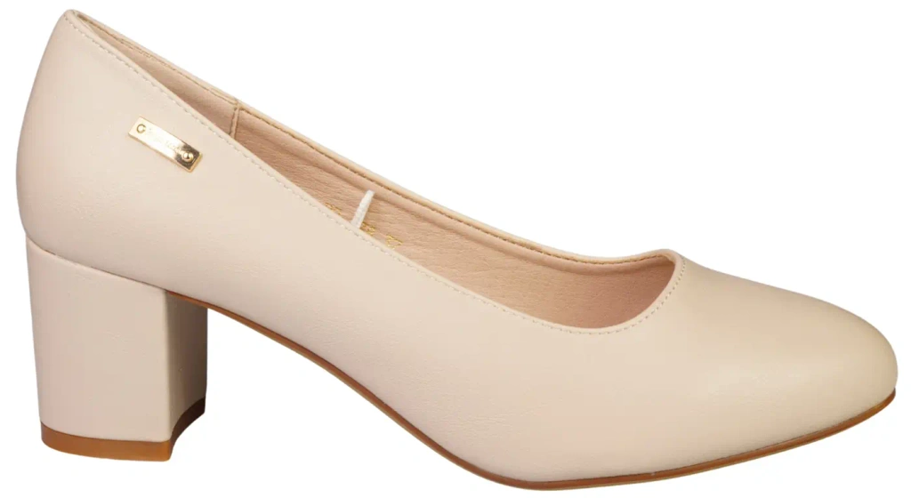 The shoes feature a stable 5 cm block heel, adding a touch of sophistication while offering significantly more comfort than traditional stilettos. The soft insole made of genuine leather ensures high wearing comfort even during long hours of use, while the lightweight construction and non-slip sole provide safety and ease of movement on various surfaces.