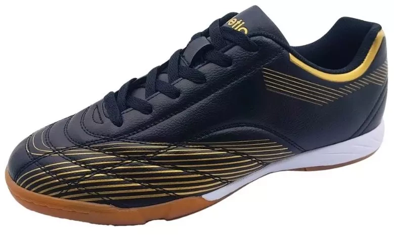 Men’s indoor football shoes by Atletico combine classic style with modern, sporty design. The black model is complemented by striking golden accents, giving the footwear an elegant and dynamic character. The upper, made of high-quality eco-leather, is resistant to abrasions and finished with attention to detail. Reinforced construction and carefully placed stitching ensure durability even during intensive use.