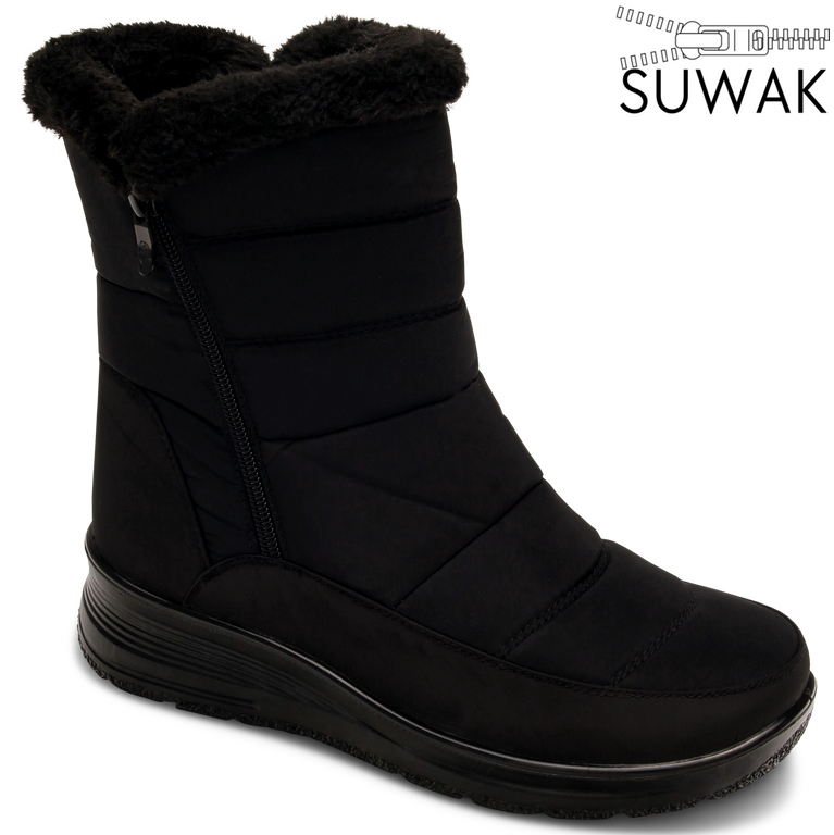 The interior is equipped with solid insulation that effectively protects against the cold, even in very low temperatures. A practical side zipper allows for quick putting on and taking off, enhancing everyday comfort. The ergonomic cut and well-shaped construction guarantee comfortable wear, while the soft inner lining adapts to the foot’s shape, providing stability when walking.