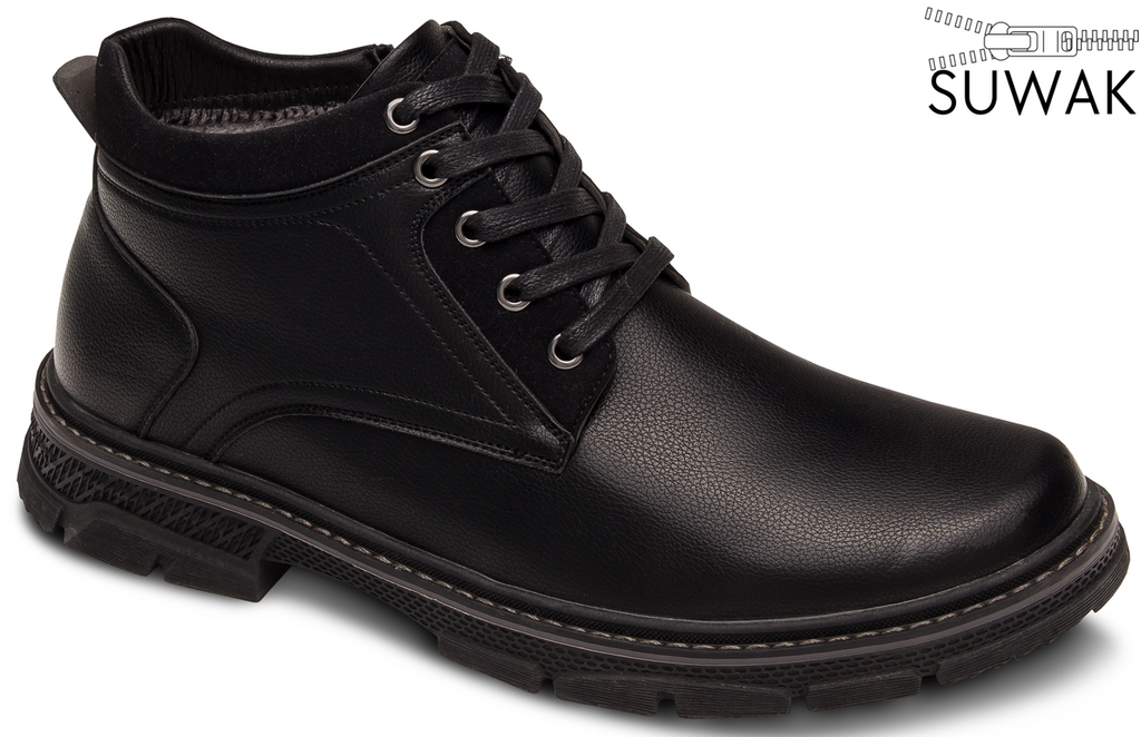 A practical zipper on the inner side of the upper allows for quick on and off, while traditional laces provide adjustable fit. Available in sizes 41 to 46, these boots offer a wide range of options for different users. Skotnicki black boots combine style, durability, and comfort, making them ideal for colder months.