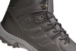 The interior is carefully lined with dense, soft synthetic fleece, providing effective protection against the cold, even during extended outdoor use. The high ankle design enhances warmth retention and shields against wind. A thick rubber sole with an anti-slip tread ensures stability on slippery or snow-covered surfaces, while also providing effective insulation from cold ground, improving comfort during winter walks.