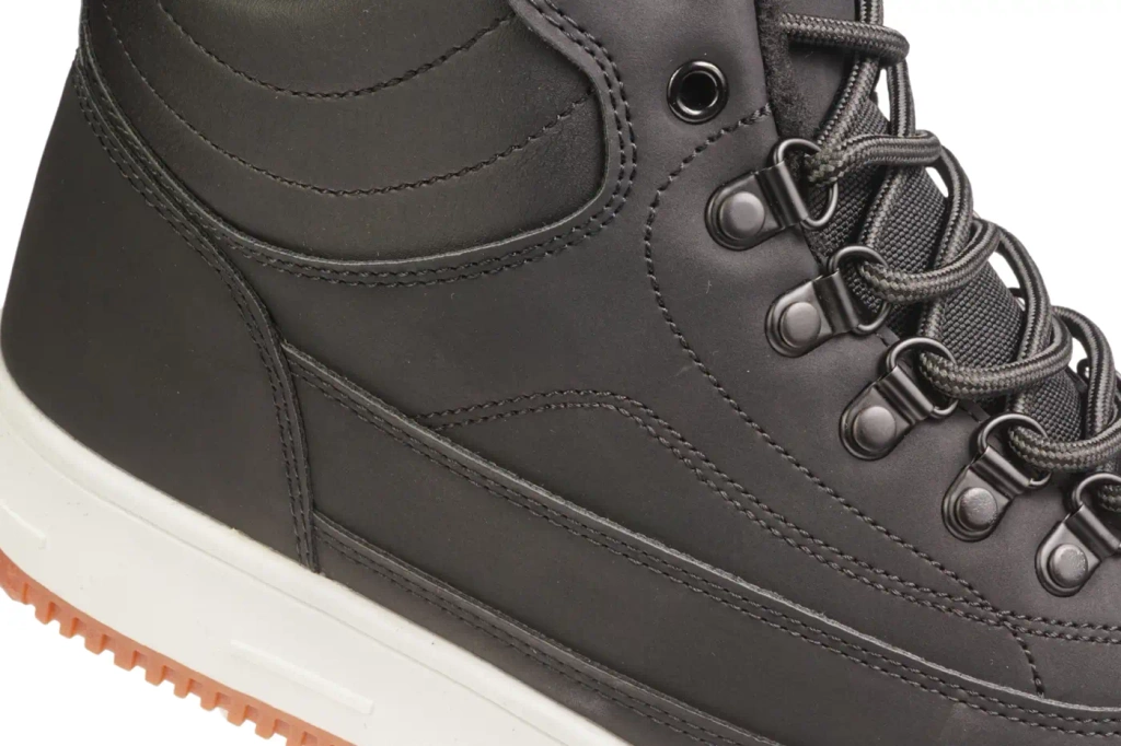 Le Scarpe men’s winter boots in elegant black with a contrasting white sole and rubber accents combine modern style with practical functionality. The upper is made of high-quality eco-friendly leather, resistant to moisture and dirt, making it ideal for winter conditions. The minimalist yet trendy design ensures these boots fit seamlessly into current fashion trends and complement a variety of urban outfits.