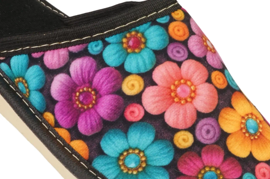 Women’s slippers by TUP in a multicolor floral design are stylish and comfortable home footwear that combine a fashionable look with practical functionality. Made from high-quality textile materials, they offer durability and a pleasant fit. The closed front design enhances thermal comfort and protects the toes, making these slippers an excellent choice for cooler days. The decorative floral pattern adds an elegant, feminine touch, perfectly suited to a home environment.