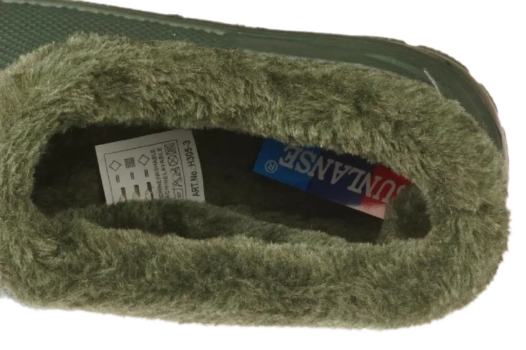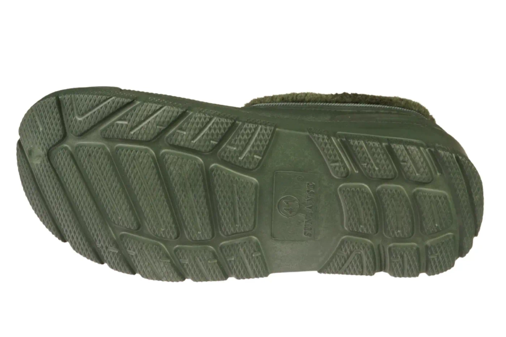 Women’s rain boots Sunlanse in two color options — black and olive — feature a distinctive embossed pattern. Made from super-light EVA foam (much lighter and more flexible than PVC or rubber; a textured foam filled with compressed air), the boots are extremely lightweight. They are insulated and ankle-high, making them perfect for cooler days. The textured sole provides slip resistance. Available in sizes 37–41.