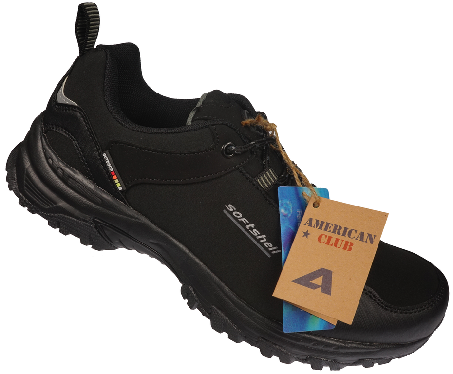 Buty trekkingowe męskie firmy American Club w kolorze czarnym to idealna opcja dla mężczyzn poszukujących wygodnego, funkcjonalnego obuwia do różnorodnych aktywności na świeżym powietrzu. Wykonane z wysokiej jakości materiału typu Softshell, który łączy w sobie lekkość, elastyczność i wyjątkową wytrzymałość, zapewniają ochronę przed trudnymi warunkami atmosferycznymi, nie rezygnując przy tym z komfortu i swobody ruchów. Softshell to materiał o doskonałych właściwościach oddychających, co sprawia, że stopy pozostają suche i świeże przez cały dzień, nawet podczas intensywnego użytkowania.
