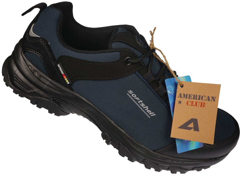 Buty trekkingowe męskie firmy American Club w kolorze granatowym to doskonały wybór dla osób poszukujących obuwia zarówno do aktywności outdoorowych, jak i do codziennego użytku. Wykonane z materiału typu Softshell, który charakteryzuje się lekkością, elastycznością i wyjątkową wytrzymałością, te buty zapewniają komfort i ochronę w każdej sytuacji. Softshell to nowoczesny materiał, który doskonale sprawdza się w trudnych warunkach atmosferycznych, jednocześnie gwarantując wysoką oddychalność i odpowiednią wentylację.