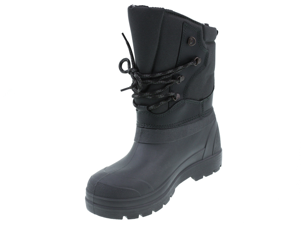 Śniegowce męskie piankowe firmy Skarbek w czarnym kolorze z zielonymi dodatkami. Wykonane zostały z elastycznej, odpornej na zagniecenia, otarcia jak i wodę pianki, która gwarantuje nie tylko maksymalny komfort użytkowania ale również długotrwałość produktu. Bieżnikowana podeszwa zabezpiecza przed poślizgiem a ich największą zaletą jest ocieplacz wykonany z kożucha i filcu, gwarantuje on utrzymanie ciepła nawet podczas minusowych temperatur. Model ten sięga do połowy łydki i jest lekki. Kalosze męskie dostępne są w naszej hurtowni w rozmiarach 41-47.