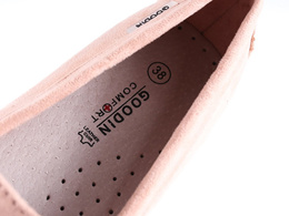 Mokasyny damskie marki Goodin w subtelnym różowym kolorze to połączenie wygody i elegancji, które doskonale wpisuje się w kobiecy styl. Obuwie zostało wykonane z wysokiej jakości skóry ekologicznej zamszowej, co nadaje im miękkości i delikatności, jednocześnie zapewniając trwałość i odporność na uszkodzenia.