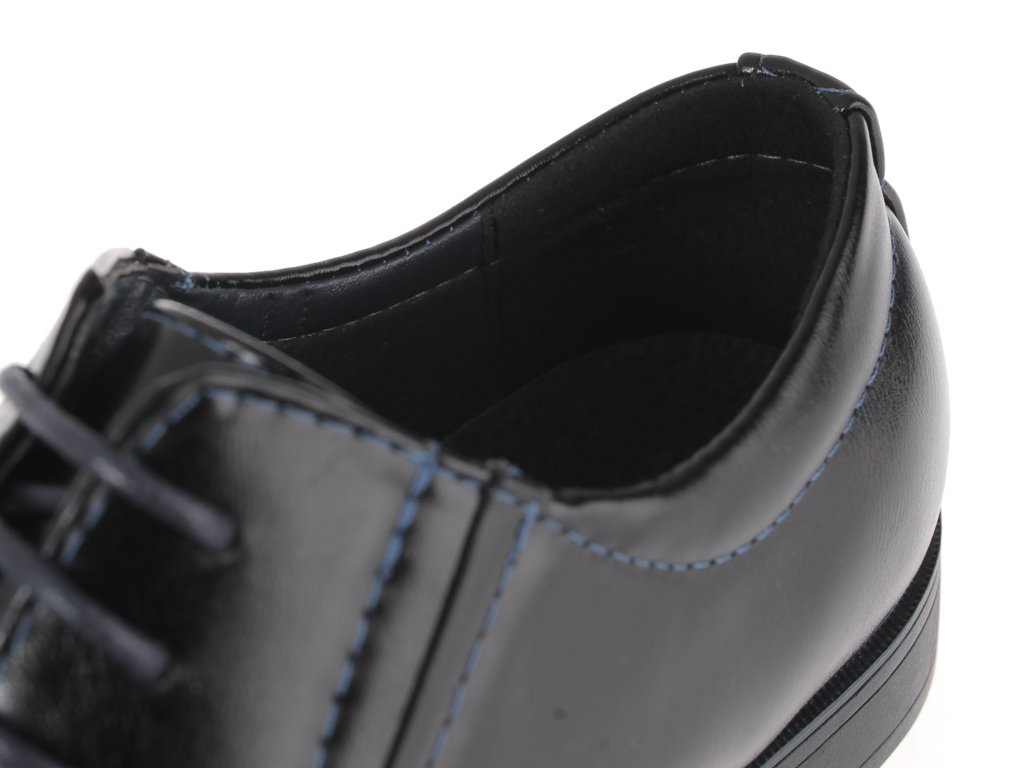 Eleganckie półbuty męskie firmy Badoxx w kolorze czarnym z niebieskimi elementami. Wykonane w dość klasycznym stylu, są gładkie, lakierkowe, z delikatnym obcasem. Środek buta został wykonany w całości ze skóry co zapewnia ogromny komfort podczas ich użytkowania. Idealnie nadają się na specjalne okazje. Półbuty dostępne w rozmiarach 40-45.
