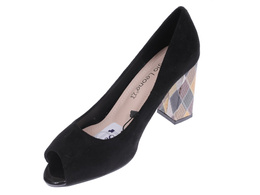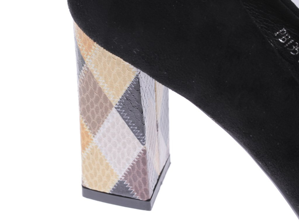 Obcas klockowy ozdobiony kolorowym wzorem to unikalny element, który nadaje butom niepowtarzalnego wyglądu. Stabilna konstrukcja zapewnia komfort podczas chodzenia, a otwarte noski dodają lekkości i podkreślają kobiecy charakter czółenek. Stylowe połączenie klasycznej formy z nowoczesnym detalem sprawia, że model ten wyróżnia się na tle innych fasonów. Chropowata podeszwa zwiększa bezpieczeństwo i zapobiega ślizganiu się, co pozwala na wygodne użytkowanie nawet na gładkich powierzchniach.