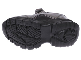 Buty sportowe dziecięce firmy Clibee w kolorze czarnym na grubej podeszwie wykonanej z pianki, dzięki której są one bardzo lekkie i wygodne. Liczne przeszycia po bokach dodają im charakteru a całość wygląda bardzo ciekawie i ładnie. Buty te wykonane zostały z najwyższej jakości skóry ekologicznej w modnym stylu. Zapinanie na rzepy bardzo ułatwia i przyśpiesza ich zakładanie a dzięki niesamowicie miękkiej wkładce buty te są wygodne i komfortowe dla stopy. Świetnie sprawdzą się do codziennego użytku. Dostępne są w rozmiarach 26-31.