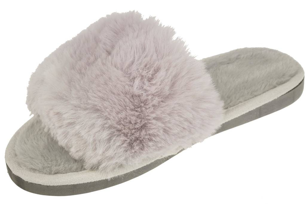 Pantofle tekstylne damskie firmy Lano w kolorze szarym. Wykonane zostały w bardzo modnym w tym roku designie, posiadają duże, miękkie futerko na przodzie. Pantofle są bardzo lekkie, zrobione z przyjemnego i miękkiego materiału tekstylnego. Posiadają gumową podeszwę, która zapobiega poślizgowi, są bardzo lekkie, ciepłe i wygodne. Doskonale nadają się jako obuwie domowe. Dostępne w rozmiarach 37-41.