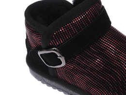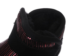 Buty zimowe dziecięce firmy Apawwa w kolorze czarnym z czerwonym, połyskującym zdobieniem. Wykonane zostały z dbałością o najmniejsze szczegóły z wysokiej jakości materiałów. Posiadają ozdobną metalową klamerkę, są bardzo lekkie i wygodne. Ich podeszwy zapobiegają poślizgowi a rzepa umożliwia szybkie i łatwe zakładanie obuwia. Ocieplany środek gwarantuje zaś uczucie ciepła podczas chłodnych i zimnych dni. Buty te dostępne są w rozmiarach 20-25.