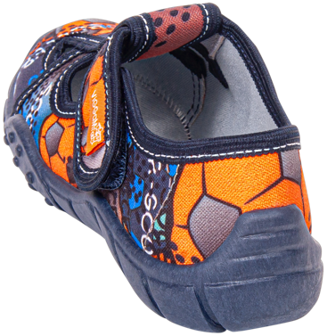 Tenisówki dziecięce firmy Viggami w kolorze granatowo-pomarańczowym z motywem piłki to doskonały wybór dla aktywnych maluchów, które potrzebują wygodnego i bezpiecznego obuwia na cieplejsze dni. Posiadają odpowiednią wentylację co zapewnia komfort podczas letnich dni, sprawiając, że stopy dziecka pozostaną suche i świeże przez cały dzień. Dzięki zapinaniu na rzepę, zakładanie i zdejmowanie butów staje się szybkie i łatwe, co jest idealnym rozwiązaniem dla dzieci uczących się samodzielności.