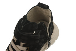 Tenisówki dziewczęce firmy Clibee w kolorze czarnym we wzorze panterki. Świetny design to główna zaleta tego obuwia jednak nie jedyna. Posiadają one usztywniany zapiętek oraz elastyczną podeszwę, są również bardzo lekkie i wygodne. Gumowy nosek gwarantuje długotrwałość oraz pozwala na utrzymanie czystości. Buty są zapinane na rzepę ale posiadają również zamek wszyty z zewnętrznej strony. Środek wykonany został ze skóry naturalnej co podnosi komfort użytkowania i umożliwia zdrowy rozwój stopy dziecka. Buty przejściowe Clibee to świetny wybór, nie tylko pod względem wygody czy komfortu dziecka ale również dobrego stylu. Dostępne są one w naszej hurtowni w rozmiarach 21-25.