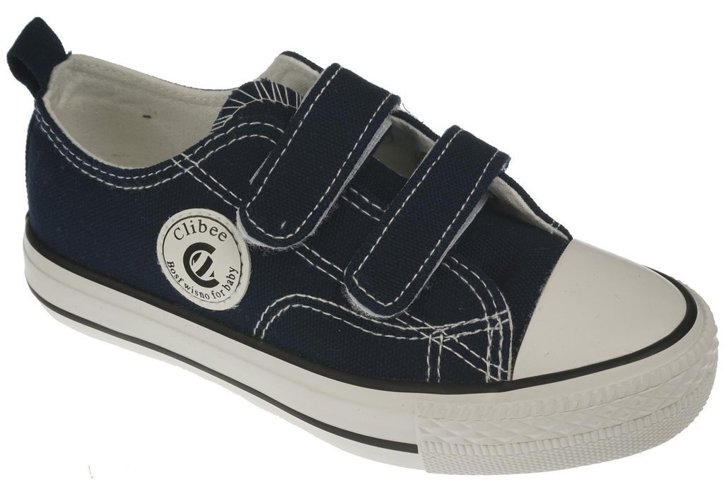 Tenisówki dziecięce firmy Clibee w pięknym granatowym kolorze. Wykonane zostały solidnie i starannie z najwyższej jakości materiałów tekstylnych, posiadają wkładkę z niezwykle miękkiego materiału. Ich podeszwa wykonana została z gumy co sprawia że zapobiega ona poślizgowi i gwarantuje przyczepność do podłoża. Rzepy umożliwiają łatwy sposób zakładania oraz idealnego dopasowania buta do stopy. Tenisówki te będą idealne do codziennego użytku, świetnie sprawdzą się do przedszkola lub szkoły. Dostępne są w naszej hurtowni w rozmiarach 25-30.