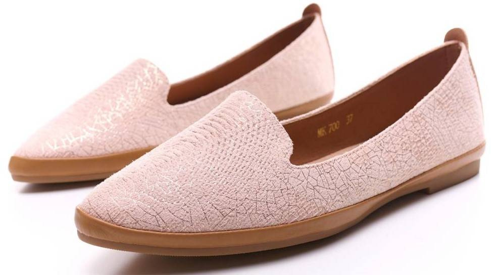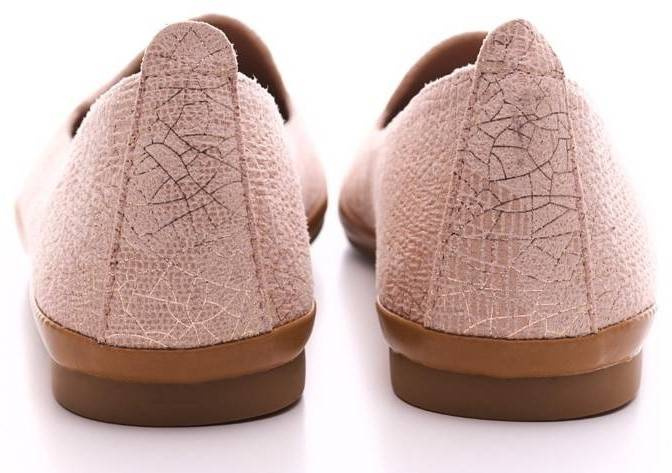 Cholewka z delikatnym tłoczeniem imitującym skórę węża nadaje niepowtarzalnego charakteru, podkreślając stylowy wygląd. Profilowana wkładka ze skóry naturalnej dba o odpowiednie ułożenie stopy, zwiększając komfort nawet podczas długiego noszenia. Lekka konstrukcja oraz płaska podeszwa sprawiają, że model doskonale sprawdza się w codziennym użytkowaniu.