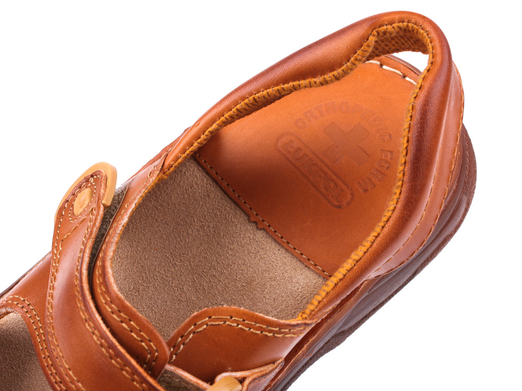 Sandały męskie firmy Łukpol w pięknym kolorze koniaku. Wykonane zostały w całości ze skóry naturalnej w bardzo ładnym designie z ozdobnymi przeszyciami oraz subtelnymi dziurkami na boku. Posiadają rzep, który pozawala na idealne dopasowanie ich do każdej stopy, są one lekkie i bardzo wygodne. Skórzana wkładka zapewnia niesamowity komfort podczas użytkowania a lekkość tego modelu dodatkowo podnosi komfort jego użytkowania. Sandały te idealnie sprawdzą się jako obuwie codziennego użytku w sezonie letnim. Dostępne są w rozmiarach 42-44.