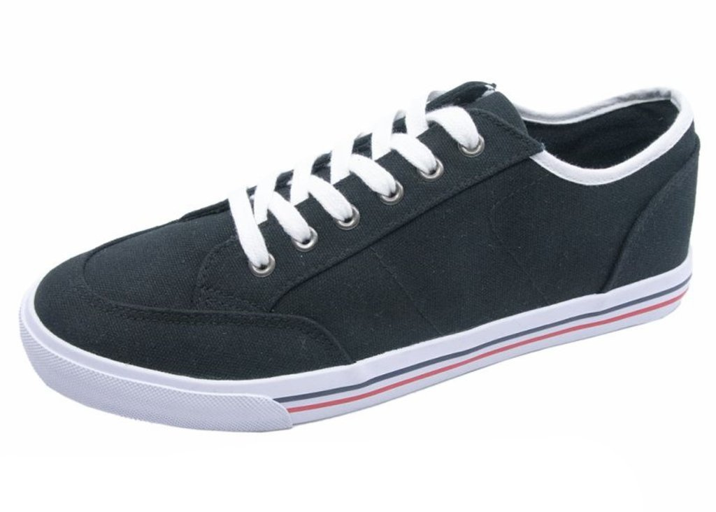 Białe podeszwy ozdobione cienkimi paskami w czerwonym i czarnym kolorze dodają sportowego charakteru, wyróżniając model na tle klasycznych tenisówek. Uniwersalny wygląd sprawia, że obuwie pasuje zarówno do jeansów, spodni dresowych, jak i bardziej eleganckich stylizacji. Dzięki lekkiej konstrukcji tenisówki świetnie sprawdzają się w cieplejsze dni, zapewniając odpowiednią wentylację i wygodę przez cały dzień.