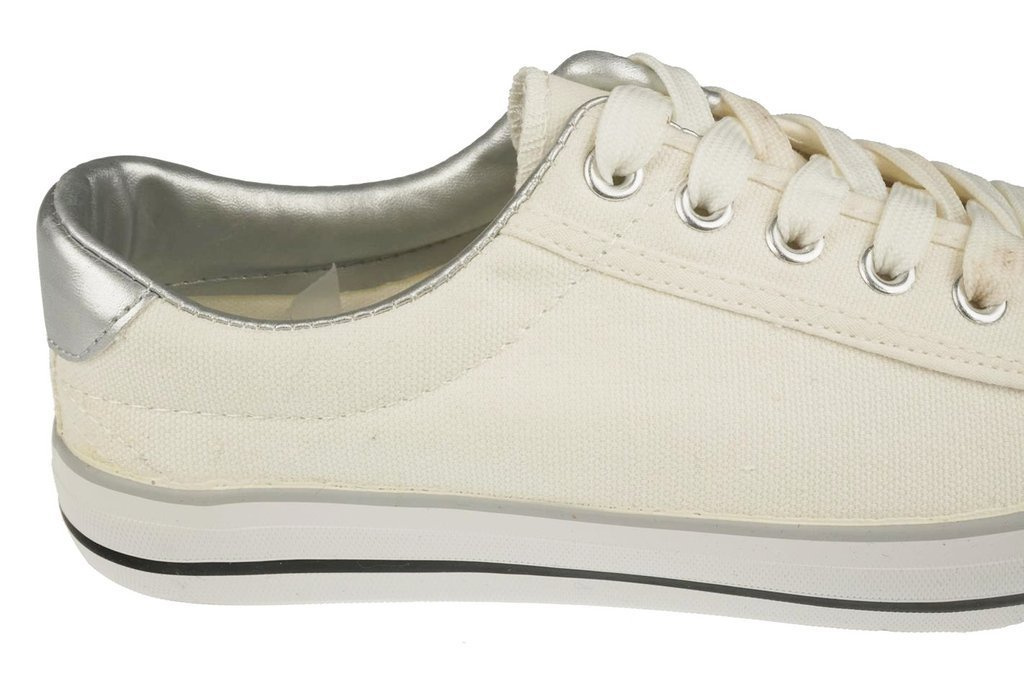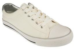 Tenisówki damskie firmy Collection Paris w białym kolorze ze srebrnymi dodatkami. Osadzone są na płaskiej, gumowe podeszwie, która zabezpiecza przed poślizgiem. Posiadają miękką wkładkę, która zapewnia komfort nawet podczas długiego użytkowania, są lekkie i wygodne. Wysokiej jakości materiały użyte do produkcji tego obuwia zapewniają długotrwałość jak i komfort podczas użytkowania. Tenisówki te będą idealne na letnie dni jako obuwie codziennego użytku, będą pasować do wszystkiego i ładnie uzupełnią nie jedną stylizację. Dostępne są w naszej hurtowni w rozmiarach 36-41.