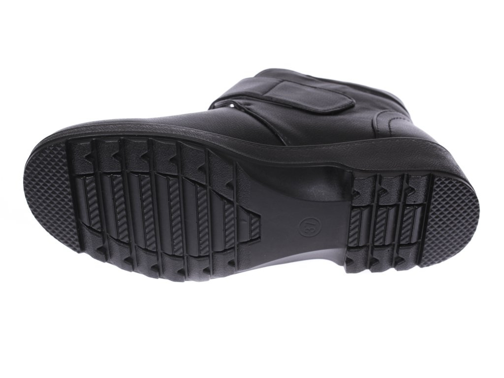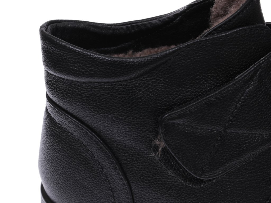 Cholewka wykonana z wysokiej jakości skóry ekologicznej gwarantuje trwałość oraz odporność na uszkodzenia mechaniczne, a jednocześnie jest łatwa w utrzymaniu czystości. Ocieplany środek skutecznie chroni stopy przed niskimi temperaturami, zapewniając komfort termiczny nawet podczas mroźnej pogody. Model został wyposażony w zapięcie na rzep, które ułatwia szybkie i wygodne zakładanie obuwia, eliminując potrzebę długiego dopasowywania i regulowania.