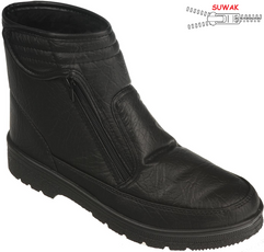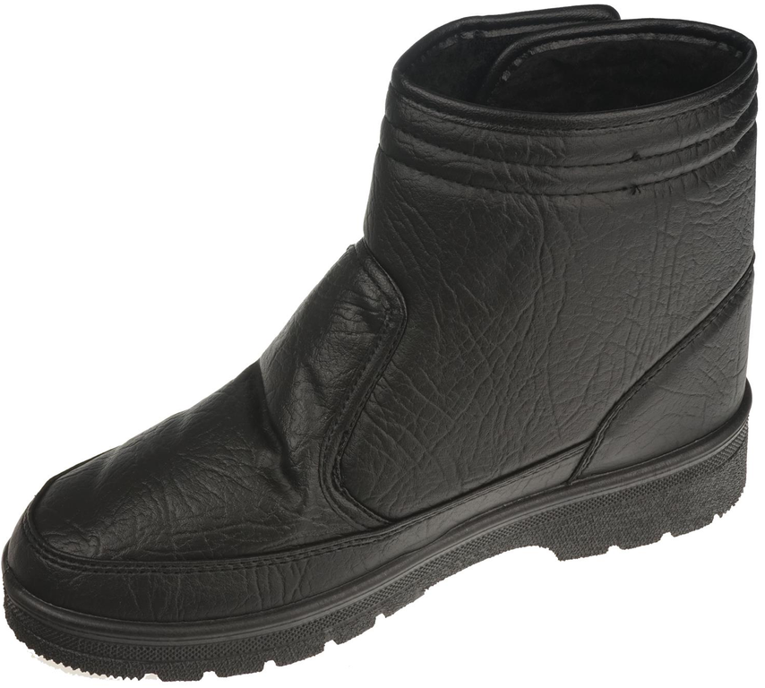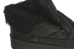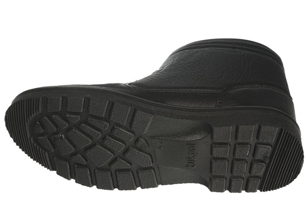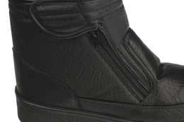 Wintery męskie Polskiej firmy Łukpol/Stomil w klasycznym czarnym kolorze. Wykonane zostały z wysokiej jakości skóry ekologicznej w klasycznym stylu, który będzie odpowiedni dla każdego. Posiadają zamek, który ułatwia ich zakładanie a gruba podeszwa z bieżnikiem zapewnia stabilność i zapobiega poślizgowi na mokrych i śliskich posadzkach. Śniegowce sięgają za kostkę oraz są ocieplone wełną naturalną, zapewnia ona ciepło i regulację temperatury. Będą one idealne do codziennego użytku w sezonie zimowym. Dostępne są w rozmiarach 41-46.