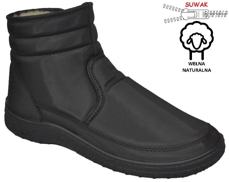 Wintery męskie firmy Skarpol w klasycznym kolorze czarnym. Wykonane zostały z wysokiej jakości ortalionu, który jest łatwy w utrzymaniu czystości, jest również bardzo wytrzymały i praktyczny. Model ten posiada wewnątrz bardzo miękki i ciepły kożuch. Buty posiadają zamek co bardzo ułatwia i przyśpiesza ich zakładanie. Dzięki gumowej podeszwie nie ślizgają się i są przyczepne do podłoża. Idealnie sprawdzą się na chłodne dni, sięgają do kostki, są lekkie i wygodne. Wintery męskie Skrpol dostępne są w naszej hurtowni w rozmiarach 41-46.