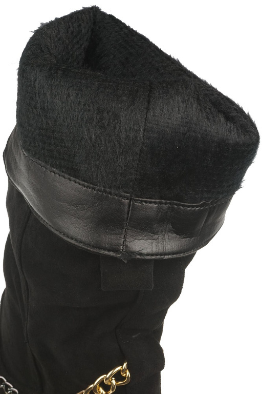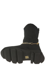 Piękne obuwie przejściowe damskie SeaStar w kolorze czarnym. Wykonane w bardzo modnym designie z wytrzymałej skóry ekologicznej zamszowej i materiałów tekstylnych. Ich podeszwy nie tylko wyglądają świetnie ale również chronią stopę przed ślizganiem. Obuwie zostało obszyte polarem, co czynie jest bardzo ciepłymi i odpornymi na przenikanie zimna do środka. Ozdobne łańcuchy nadają im charakteru. Mimo swojego topornego wyglądu obuwie nie jest ciężkie. Obuwie jest idealnym uzupełnieniem jesiennych kreacji. Wzór ten to najnowszy hit sprzedażowy. Dostępne są w rozmiarach 36-41.